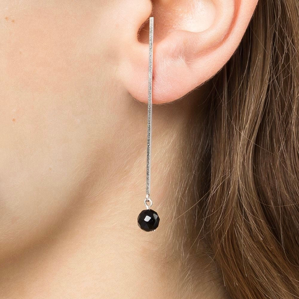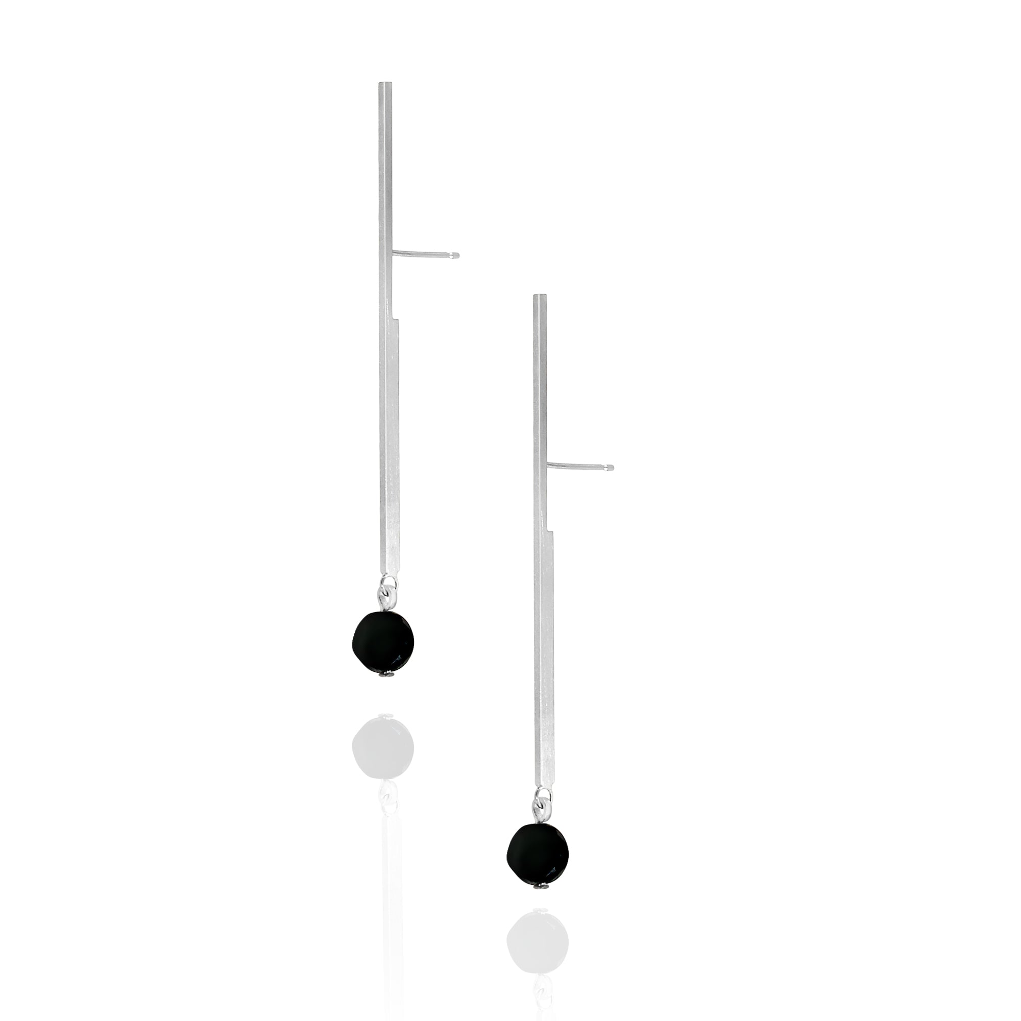HSU "COLOUR" Black Onyx Sterling Silver long Extend Swing Earring (C22)